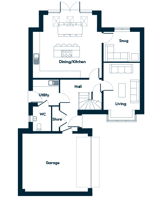 NOTE: Customers should note images (CGIs) are for illustrative purposes only. All room dimensions are approximate and furniture layout is for illustrative purposes. Homes may be ‘handed’ (mirror image) versions of illustrations, and could be detached, semi-detached or terraced. Material and specifications will vary from site to site and plot to plot, including rendering and roof colours. Detailed plans and specifications for each plot is available to view at our sales centre during working hours. Please consult with your Sales Executive to make your own enquiries to check individual property details and specifications before making a reservation.