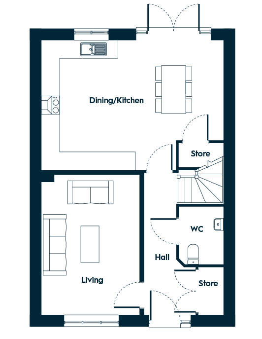 NOTE: Customers should note images (CGIs) are for illustrative purposes only. All room dimensions are approximate and furniture layout is for illustrative purposes. Homes may be ‘handed’ (mirror image) versions of illustrations, and could be detached, semi-detached or terraced. Material and specifications will vary from site to site and plot to plot, including rendering and roof colours. Detailed plans and specifications for each plot is available to view at our sales centre during working hours. Please consult with your Sales Executive to make your own enquiries to check individual property details and specifications before making a reservation.