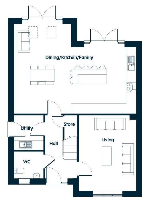 NOTE: Customers should note images (CGIs) are for illustrative purposes only. All room dimensions are approximate and furniture layout is for illustrative purposes. Homes may be ‘handed’ (mirror image) versions of illustrations, and could be detached, semi-detached or terraced. Material and specifications will vary from site to site and plot to plot, including rendering and roof colours. Detailed plans and specifications for each plot is available to view at our sales centre during working hours. Please consult with your Sales Executive to make your own enquiries to check individual property details and specifications before making a reservation.